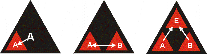 Each of the three parts however is again a Whole for itself and can thus be understood as a new beginning (of its own internal development) and thus as a General (A) of its own, which divides again the Specific within itself and finally regains its own Singularity, but now grown together as a Unit: